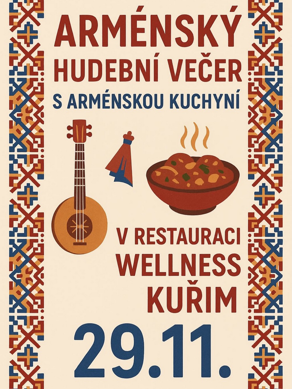 Večer plný dobrého arménského jídla a pití. Na návštěvu se těší tým restaurace Wellness Kuřim pod vedením Razmika Besaljana.
