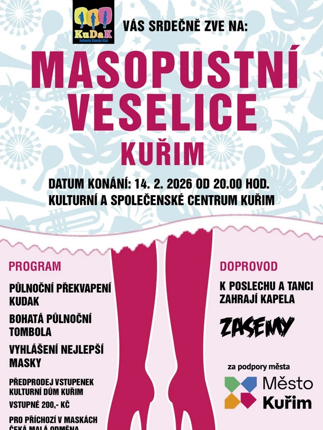 se koná v Kulturním a společenském centru v Kuřimi - KULŤAS.
