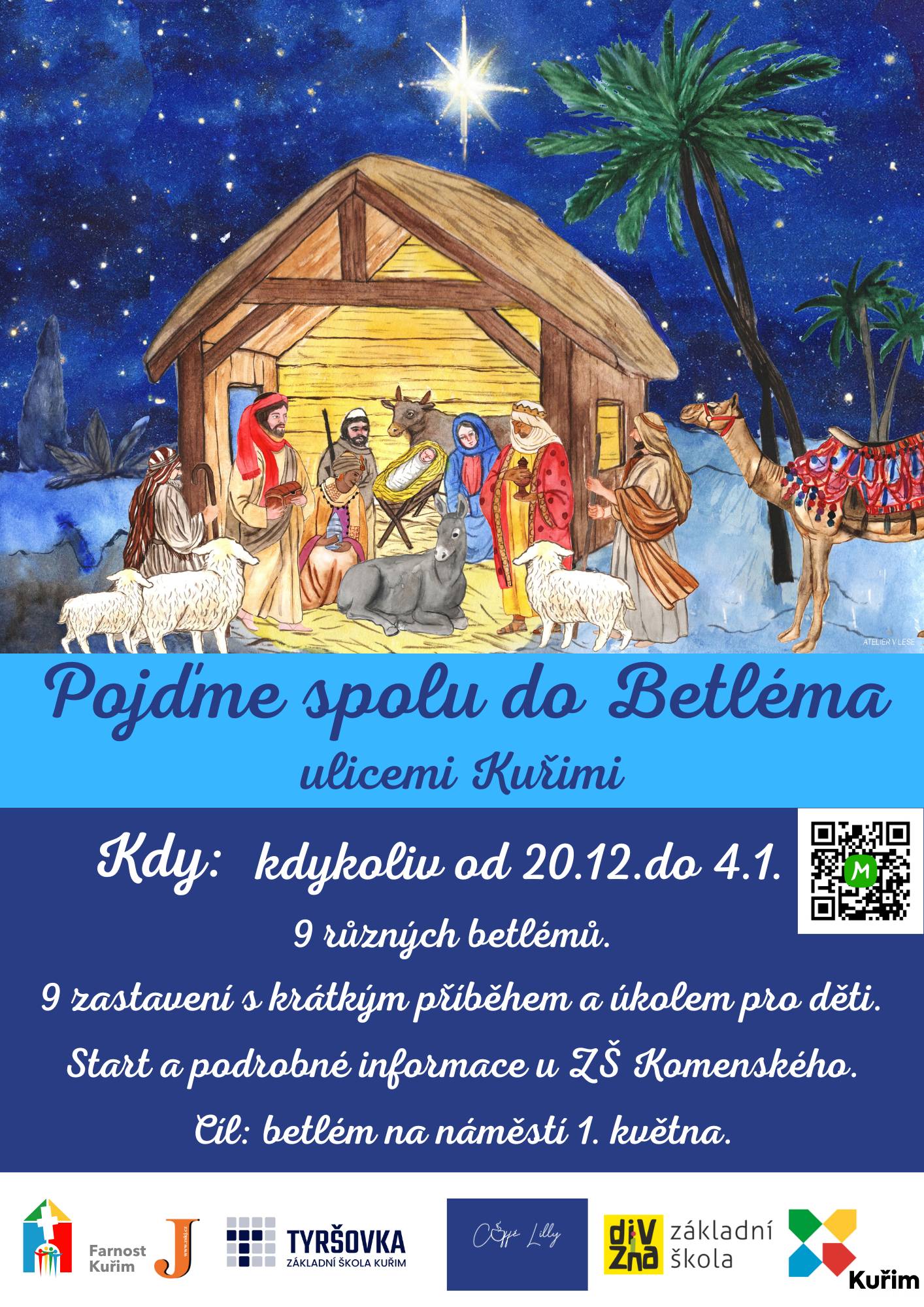 Pro starší a dospělé pak tato cesta nabídne pohledy na 9 krásných betlémů a hezkou procházku po vánoční Kuřimi. Přejeme, ať si betlémské putování hezky užijete se svými blízkými.