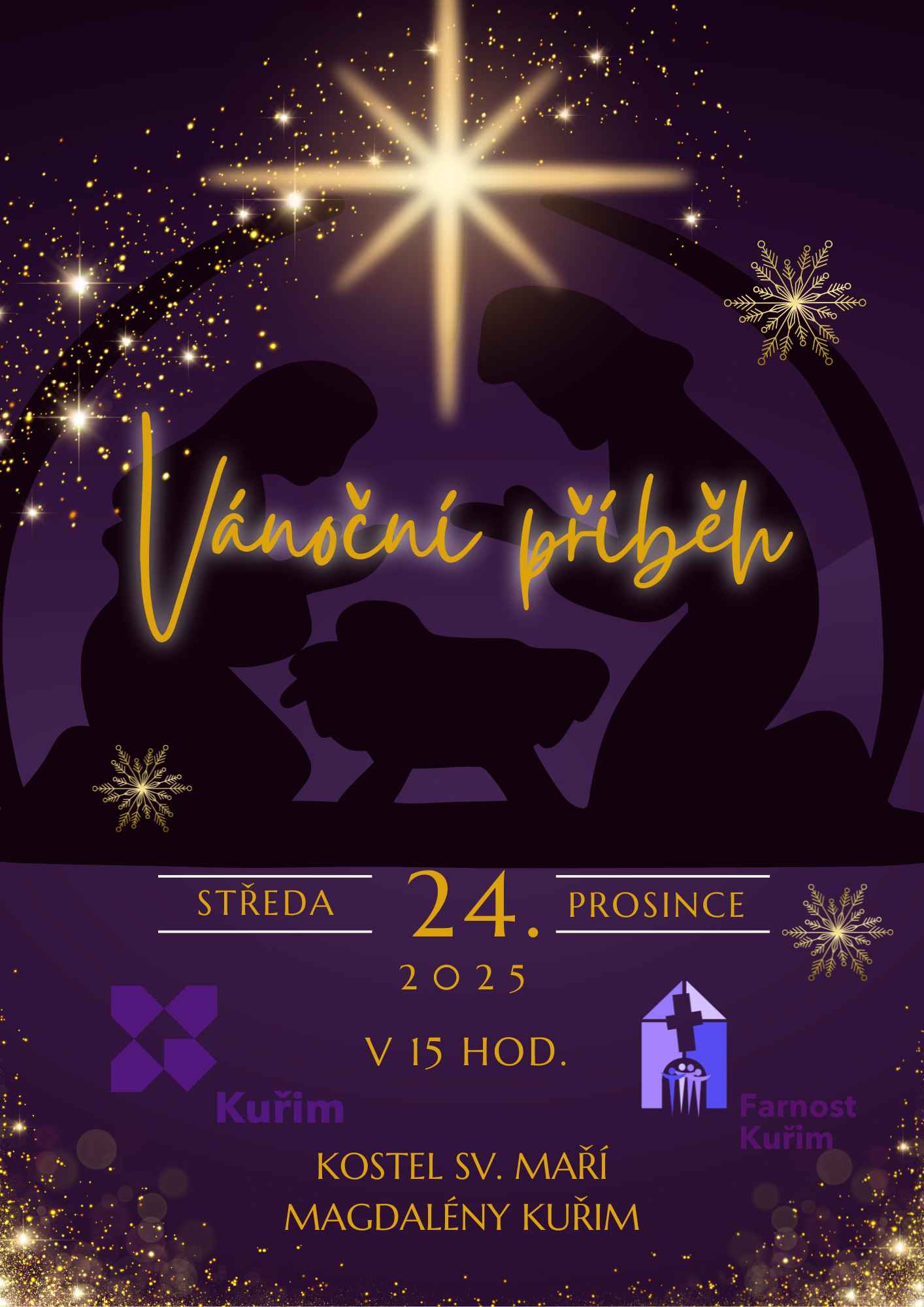 Již tradičně zveme na Štědrovečerní setkání v kuřimském kostele sv. Maří Magdaleny se zpěvy dětské scholy, s motivy vánočních událostí a s krátkou bohoslužbou slova. Možnost přijít si pro betlémské světlo.